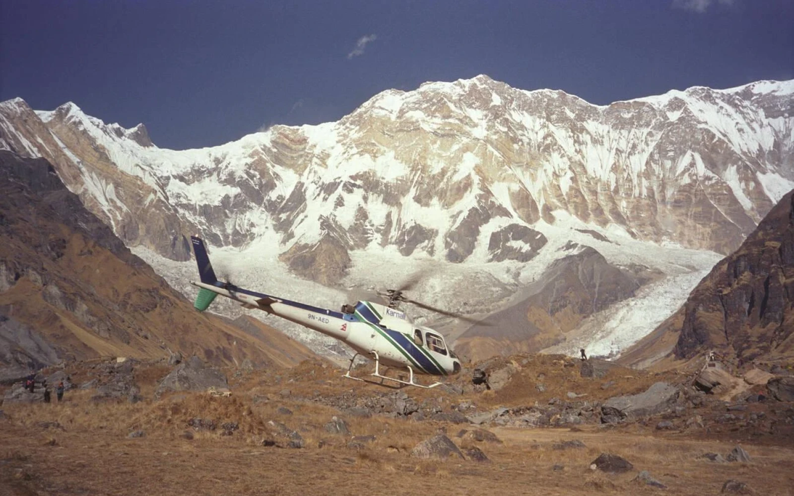 During the flight with Heli Tour in Nepal, you’ll witness some of the most iconic mountains in Nepal. Annapurna I (8,091 m), the tenth-highest mountain in the world, dominates the skyline. The sacred Machapuchare (Fishtail Mountain) stands elegantly with its distinctive twin summit. Annapurna South, Hiunchuli, and Gangapurna complete the stunning panorama surrounding the base camp landing zone.