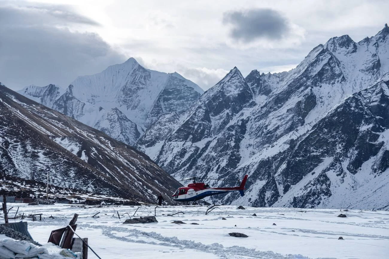 The tour package with Heli Tour in Nepal includes hotel pick-up and drop-off from Kathmandu, a round-trip helicopter flight covering Kathmandu, Gosaikunda Lake, and Langtang Valley, a traditional Sherpa-style breakfast at Kyanjin Gompa, all necessary permits and airport taxes, a highly experienced pilot and crew, pre-flight safety briefing, and helicopter insurance. It is designed as a hassle-free adventure to explore the central Himalayas from the sky, with short landings to fully enjoy the breathtaking scenery.